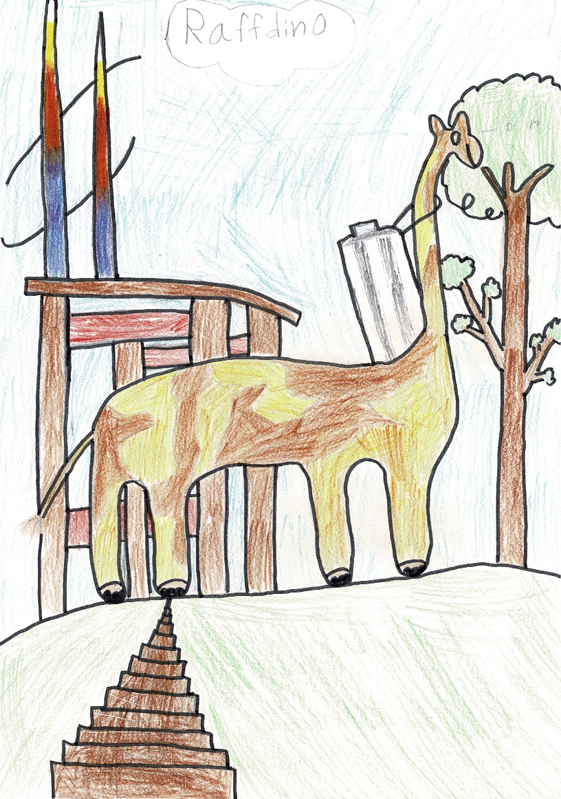 Wow! Här kommer Raffdino – en supersmart och snäll dinosaurie ritad av Vincent. 🦕